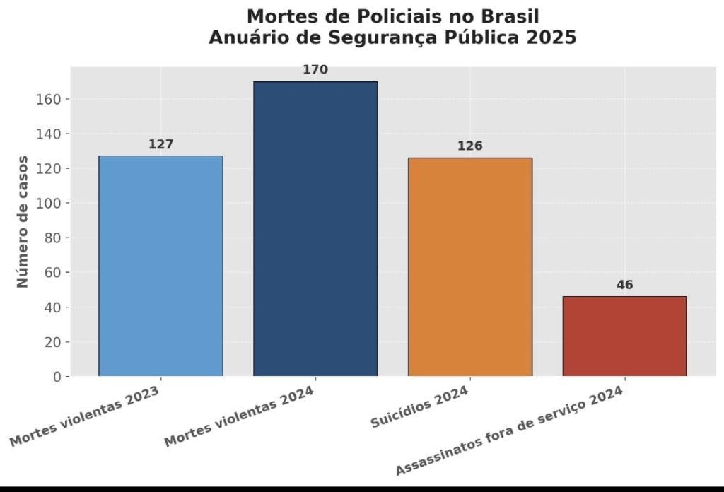 O Anuário Brasileiro de Segurança Pública 2025 trouxe um dado preocupante: em 2024, as mortes de policiais cresceram quase 30% em relação ao ano anterior. Foram 170 policiais mortos, contra 127 em 2023.